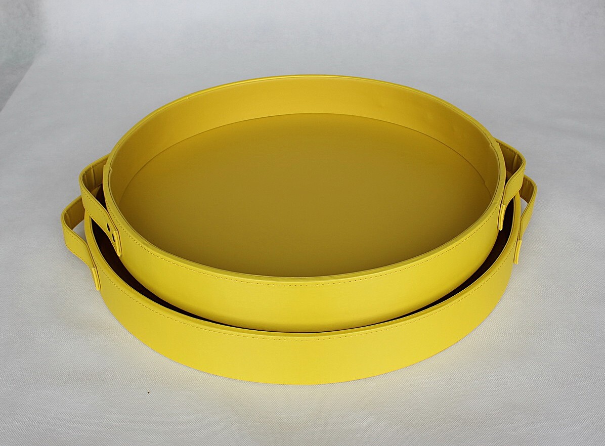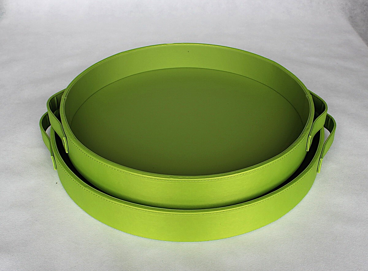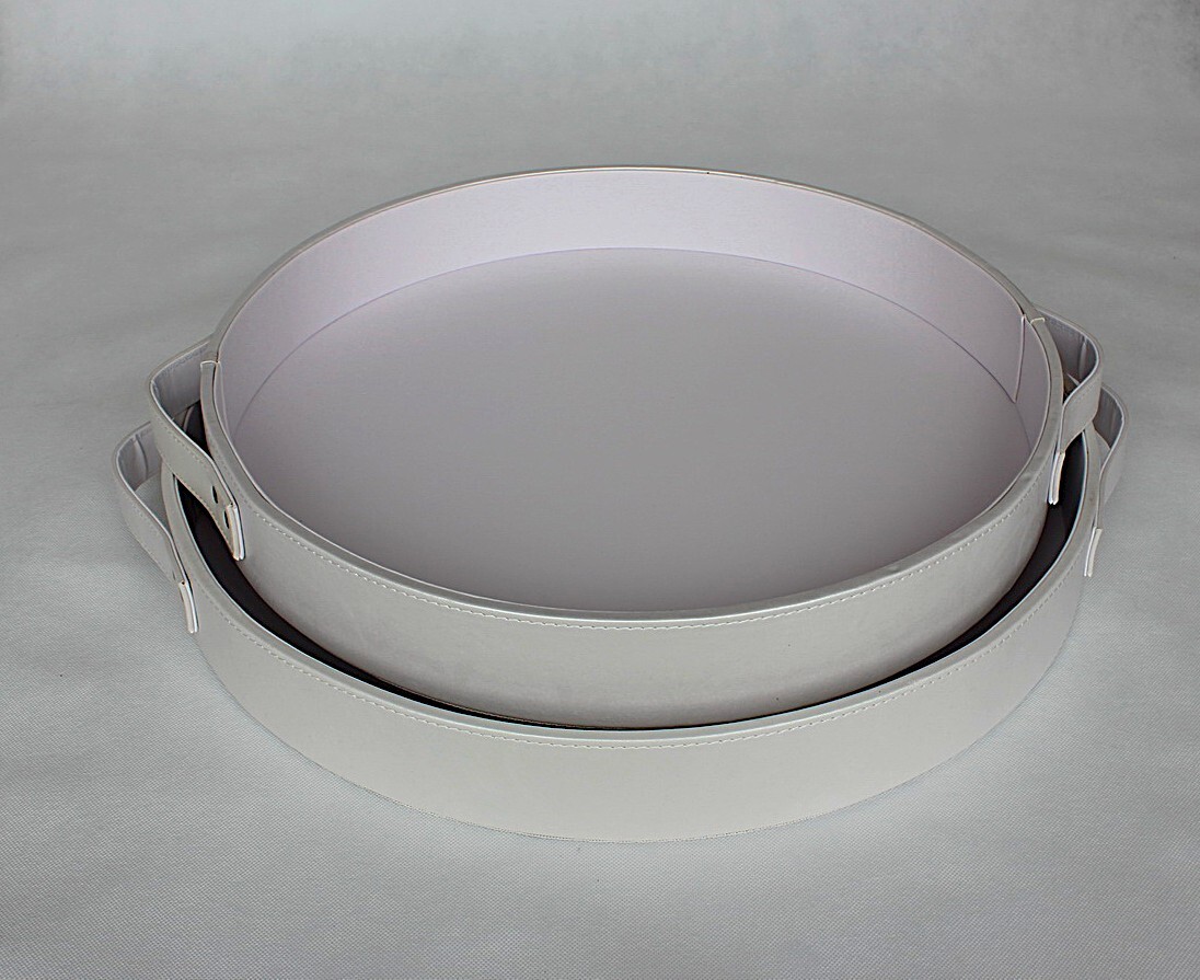 Set of 4 PU leather tray, Round shape, Decorative